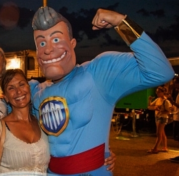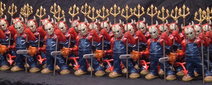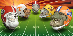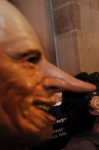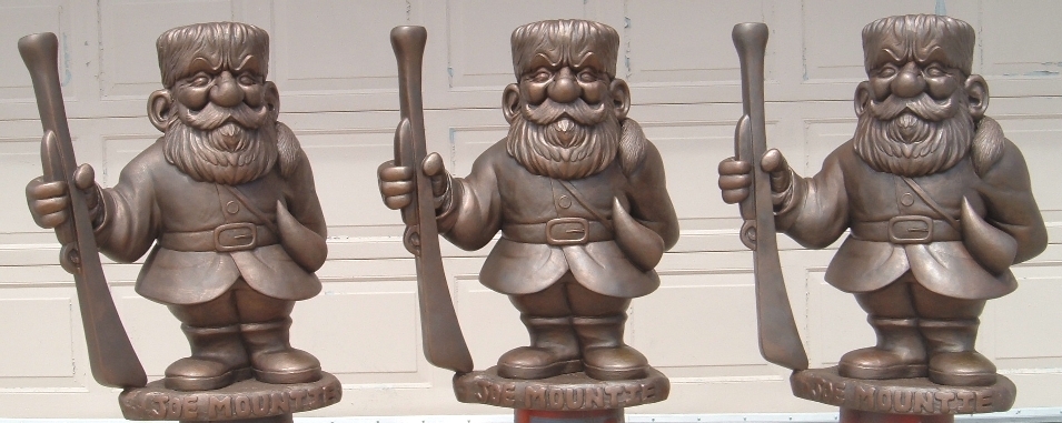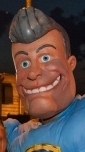 Halloween Horror Nights 24/25. When Universal Studios Orlando asked us to lend an appendage (or two) to their annual Halloween spooktaculars, we asked... "does a shark poop in the sea?" Sample pages (top of page) show our custom props, masks and decor! If you've ever wondered where Eminem gets his custom Chrome Chainsaws and Battle-Bats made... wonder no more (see right)! Eminem - Slim Shady Clothing needed two of each - plus figurine production of their company logo character (left). From initial concept and design on one-of-a-kind custom props, to mass produced promotional items, ask about our experienced custom design and manufacturing facility....... we've got you covered! When Disneyland needed three of their Haunted Mansion inhabitants to "fly-the-coup" on a happy-hike throughout their park and into Los Angeles - who d'ya think they called Dynamic Design International! The Hitchhiking Ghosts were planning a ghoulish getaway from their cozy moldy sanctum within Disneyland! There were twelve custom masks designed and created (four of each) produced and delivered in under a week! Each happy haunt went off without a "hitch!" Our clients were so happy in fact, their next happy-hike was held for a Television Spot! Cirque Du Soleil "O" (The Bellagio Hotel & Casino - Las Vegas/Nevada). When The Sentaur Group secured the collegiate licensing for their football masks and props, DDI created their designs, prototypes, manufacturing, packaging and logistics (the entire gig). Spanning years, with multiple teams and styles. The natives are restless at DDI. Their insatiable appetite for all things creative, is a welcome curse! Reflected in their art, they forge their creativity, closer to the heart! Hang-Ten Dude! - Ridebro Shoes are all about gettin' back to an easier way of livin'. Their mascot is a laid-back, cool-dude, in a loose-mood... but this funky-monkey is on the move - an' lookin' for thrills around every corner! When you get a call asking you to design masks that can be worn while jumping out of an airplane, or poundin' the curls... you'd better build it to last. Got Theme Park? - The Dark Carnival (NJ) Haunted Attraction asked us to produce these fiberglass clown props - based on their haunts lead character. Each head measures over four feet high & five feet wide, complete with inner smoke-machine piping and glowing eyes! The mascot for Mount San Antonio College is a hardy wilderness chap. The Aquatics Department contacted us regarding a three-foot-high statue, depicting the school's mascot, his name - "Joe Mountie". He's as rugged as he looks, 'cause he's made to last with fiberglass - resin and an inner rigid-core, plus steel mounting-hardware. He lives outdoors year-round (pool-side) where the team rubs his foot for good luck, before each meet! What do Halloween and Political Campaigning have in common? Putting on masks, going door to door - and soliciting for as much stuff as possible, in a specifically alloted amount of time! The similarities are scary and so is this Campaign-Commercial Politicians Wearing Masks? You betcha'! We get numerous inquiries for satirical and non-satirical masks based on many a fun-lovin' political figure! When Bob Sullivan decided to run for Governor of Oklahoma, a TV Commercial produced for his campaign required our particular talents! Click-on the image (at right)! Custom props from DDI include popcorn buckets that are filled to the brim with rigid resin popcorn! This larger-than-life bucket-"o"-corn had to be durable enough to withstand it's long journey to the Cannes Film Festival in France, yet light-weight enough for easy handling. Fabricated feverishly in a few days, our custom "prop-corn" was a very last minute (and we mean last minute) addition to "The Simpsons Movie" promotional display! Mmmm... "let's all go to the lobby, let's all go to the lobby..." Bail-Out Bull-Sh**! (click images - for CNBC and fun Youtube vids!)