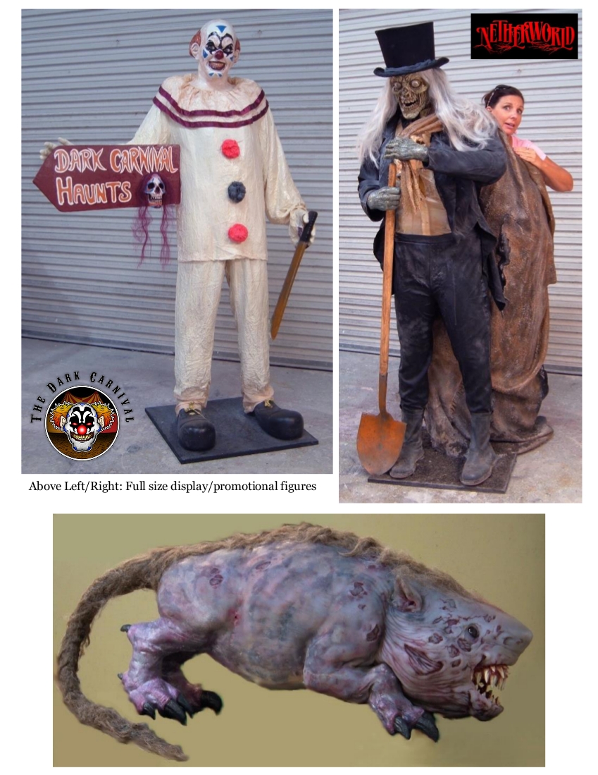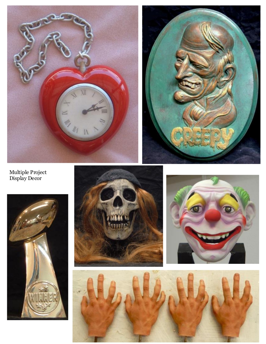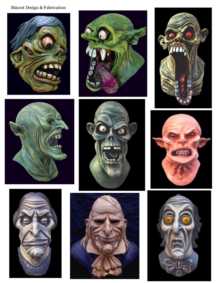 Below you'll find a few more pieces from our vault. Custom masks, props, custom mascots, figures, scenic decor - and much, much more. For additional information, pricing and options - contact The Caretaker with this handy yellow-link!